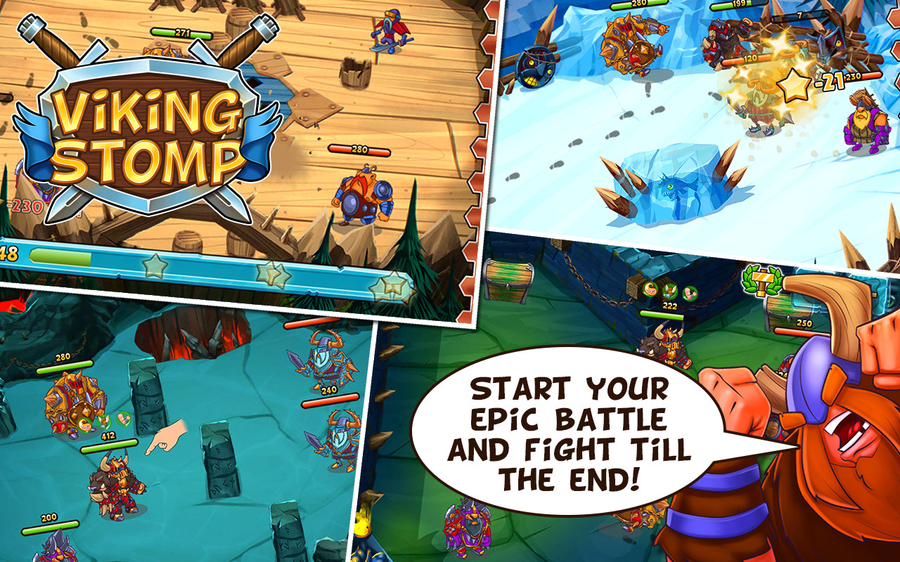 Emocionante mundo mítico de Vikings Poderosos acolhe cada guerreiro digno. Pegue seu machado de batalha e junte a sua equipe no Drakkar! Viking Stomp está esperando por você! Segure inúmeras batalhas no meio das terras de gelo, vales verdes ou mesmo no deck do Drakkar! Leve seus homens e use suas habilidades com sabedoria. Todo mundo tem suas próprias habilidades especiais, e cabe a você aprender todos eles!